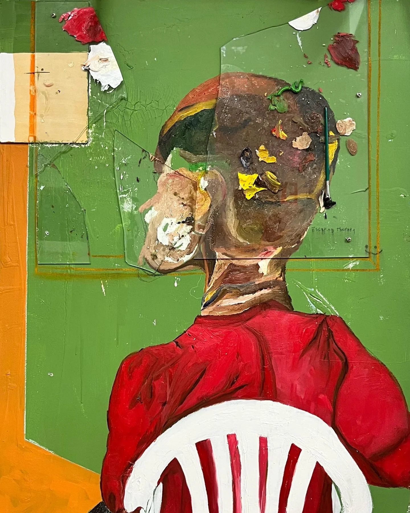 House paint, oil, and plexi glass on Canvas